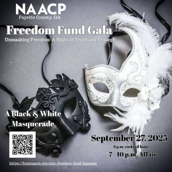 Join the Fayette County NAACP for an unforgettable evening of elegance and empowerment. This year’s Freedom Fund Banquet brings our community together under the powerful theme, Unmasking Freedom: A Night of Truth and Triumph.